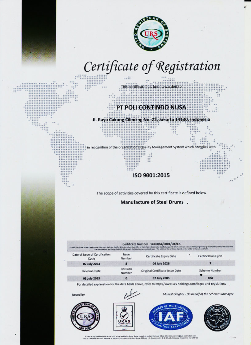 - PT Poli Contindo Nusa, also have UN certification from BAM (Bundesanstalt für Materialforschüng und – prüfung), The Recommendation on transport dangerous goods of the UNITED NATIONS, (Regulation concerning the transport of dangerous goods by road, rail, sea and air)